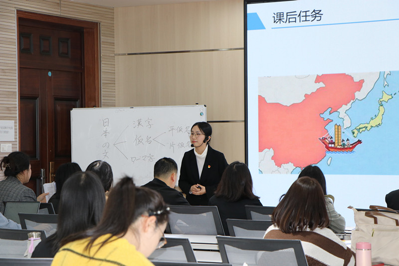 在比赛现场,各位选手精神饱满,针对自己的授课内容进行深度挖掘与阐释,呈现了思想的深度与教学互动的温度。他们或聚焦“英雄”主题,剖析“英雄”的内涵与特征;或以“传统工艺”为例,探究其对构建民族精神的重要作用;或分析英语句子内部的结构特点,阐释英语的魅力。各位选手的教学设计十分用心,PPT制作精良美观,教学组织到位合理,获得观摩同行的好评。