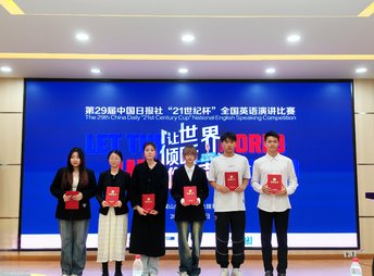 经过激烈的角逐,最终,戴悦和张思飞两位选手获得此次全国英语演讲比赛校内选拔赛的第一名。