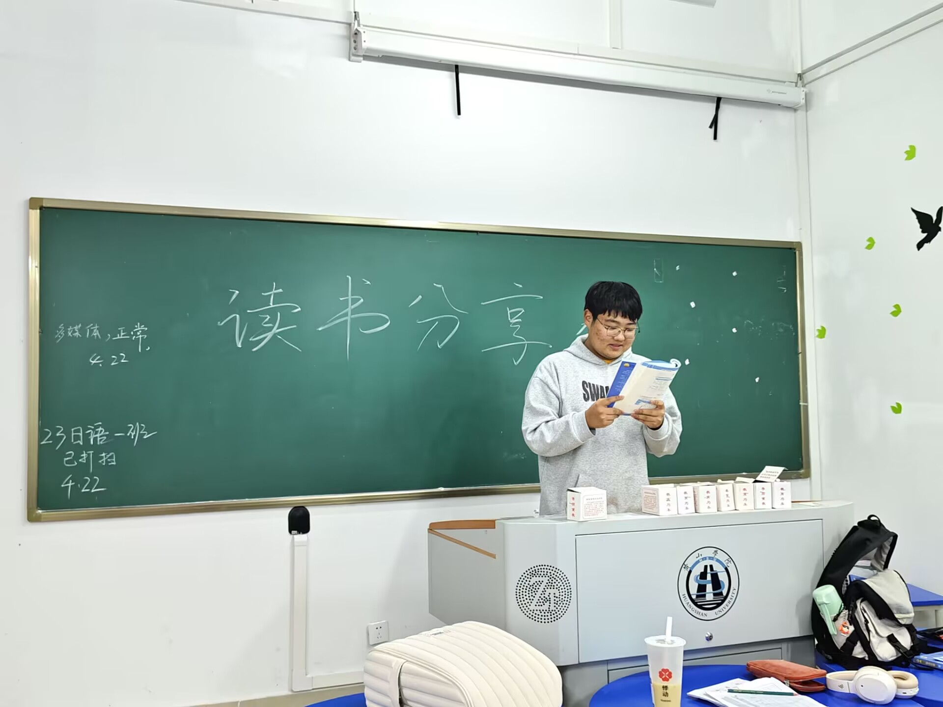 为给同学们提供一个交流学习的平台,激发大家对阅读的热爱和兴趣。4月22日,23日语1班在逸夫综合楼举办了一场别开生面的读书经验分享会。23日语1班全体同学参加。