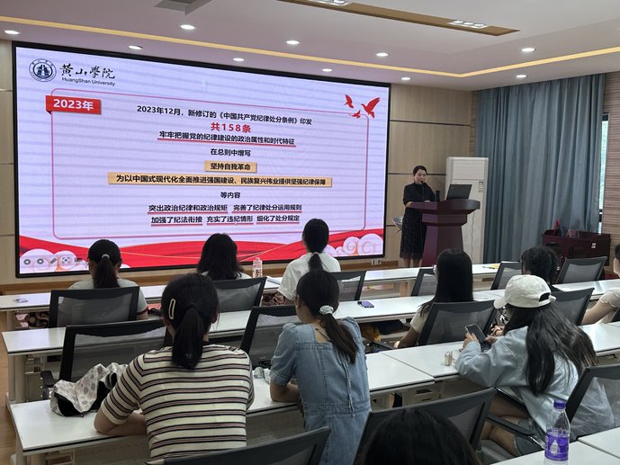 讲座以学生喜闻乐见的主题微电影切入,引入“廉洁”课程主题。随后,张文静向全体毕业生解读《中国共产党纪律处分条例》,结合典型案例,引导毕业生树立“学做真人,廉洁从业”的思想意识,时刻做到“知敬畏,存戒惧,守底线”。最后,她要求全体毕业生坚持自重、自省、自警、自励,始终做到心有所畏、言有所戒、行有所止,做崇德向善、严守纪律的模范。