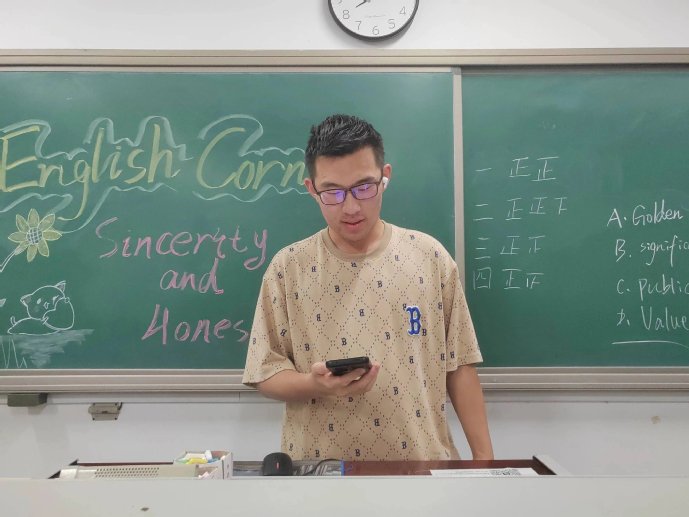 5月17日,金年会官网在逸夫综合楼5503教室开展诚信主题英语角活动。在活动过程中,通过创新活动形式,鼓励同学积极分享对诚信的感悟和身边的诚信故事,进一步深化了同学们对诚信的理解,增强了诚信意识。另外,通过观看诚信视频、回答有关诚信问题、单词接龙等方式增强了活动的趣味性,使同学们能将诚信精神内化于心,外化于行。