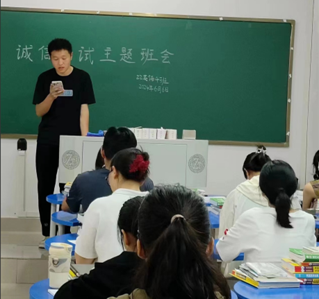 为进一步加强大学生诚信教育,树立诚信考试的良好风气,6月6日晚,22英语4班成功举行了一场以“诚信考试,文明应试”为主题的班会。