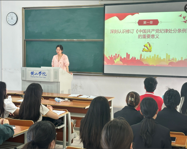 课上,曹媛媛介绍了《条例》修订的重要意义及主要内容,从政治纪律、组织纪律、廉洁纪律、群众纪律和生活纪律等方面,结合案例,解读《中国共产党纪律处分条例》的深刻内涵,分析当前党的纪律建设面临的形势和挑战。