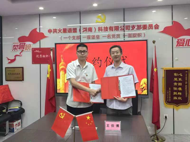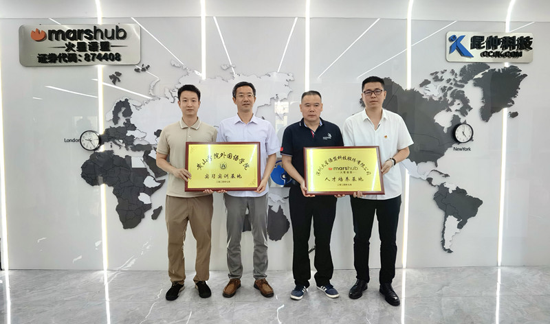 为强化专业实习实训基地建设,并有效落实访企拓岗促就业行动,7月17日,金年会官网院长洪常春、副院长王任傅、英语教研室主任王毅聪、日语教研室主任李艳一行四人,前往深圳火星语盟科技有限公司(长沙基地)举行专业实习基地的签约及授牌活动。