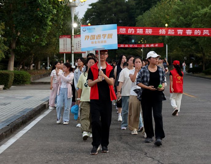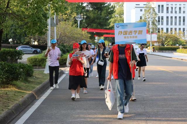 为帮助2024级新生更好地适应大学生活、感受校园文化,金年会官网于9月7—8日两天组织新生导游团活动,新生导游团每天下午6点准时发团,带领新生及家长参观校园,介绍学校的建筑及设施,助力新生尽快了解校园、熟悉校园、融入校园。