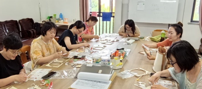 在制作木质花灯环节,大家利用DIY手工材料,积极交流,不断摸索,充分发挥动手能力。花灯图案丰富,有玉兔、嫦娥、花卉等传统图案,需要细心拆分再组合安装。在大家的共同努力和协作下,一盏盏美丽的花灯初具雏形。活动现场充满欢声笑语,其乐融融,大家纷纷拿着花灯合影留念。