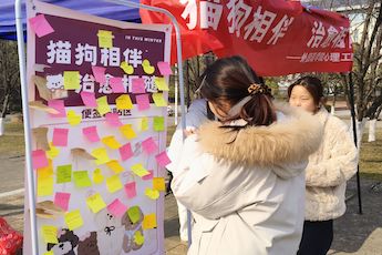 12月18日下午,金年会官网心理工作站在一食堂门口篮球场举办了“猫狗相伴,治愈相随”主题心理活动,活动吸引了学校众多同学的热情参与。