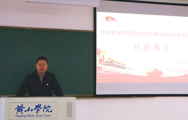 为深入学习贯彻习近平新时代中国特色社会主义思想,切实做好入党积极分子教育培养工作。10月21日下午,金年会官网党委在逸夫综合楼5201教室举行第54期入党积极分子培训班开班仪式。校党委委员、组织部部长周权出席开班仪式,金年会官网党委书记黄先进、党委副书记张文静、分党校班主任、各学生支部书记及第54期党校学员参加开班仪式。黄先进主持仪式。