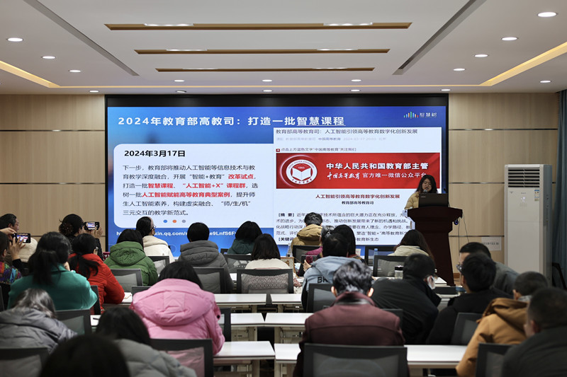 针对今年“质量工程”项目中新增加的“AI+教育”课程类申报,辅导报告会还专门邀请了上海卓越睿新数码科技股份有限公司的金课咨询师陈照冉,对智慧课程和人工智能通识课程的建设作了专题培训。