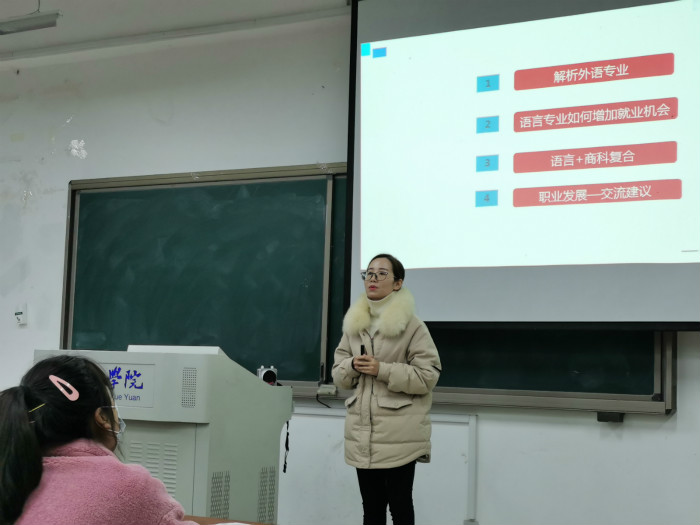 本次讲座使学生对外语专业的就业前景有了更加深层次的了解,利于学生明确未来发展方向,做出适合自己的选择,是金年会官网“求真励学”讲坛系列讲座之一。